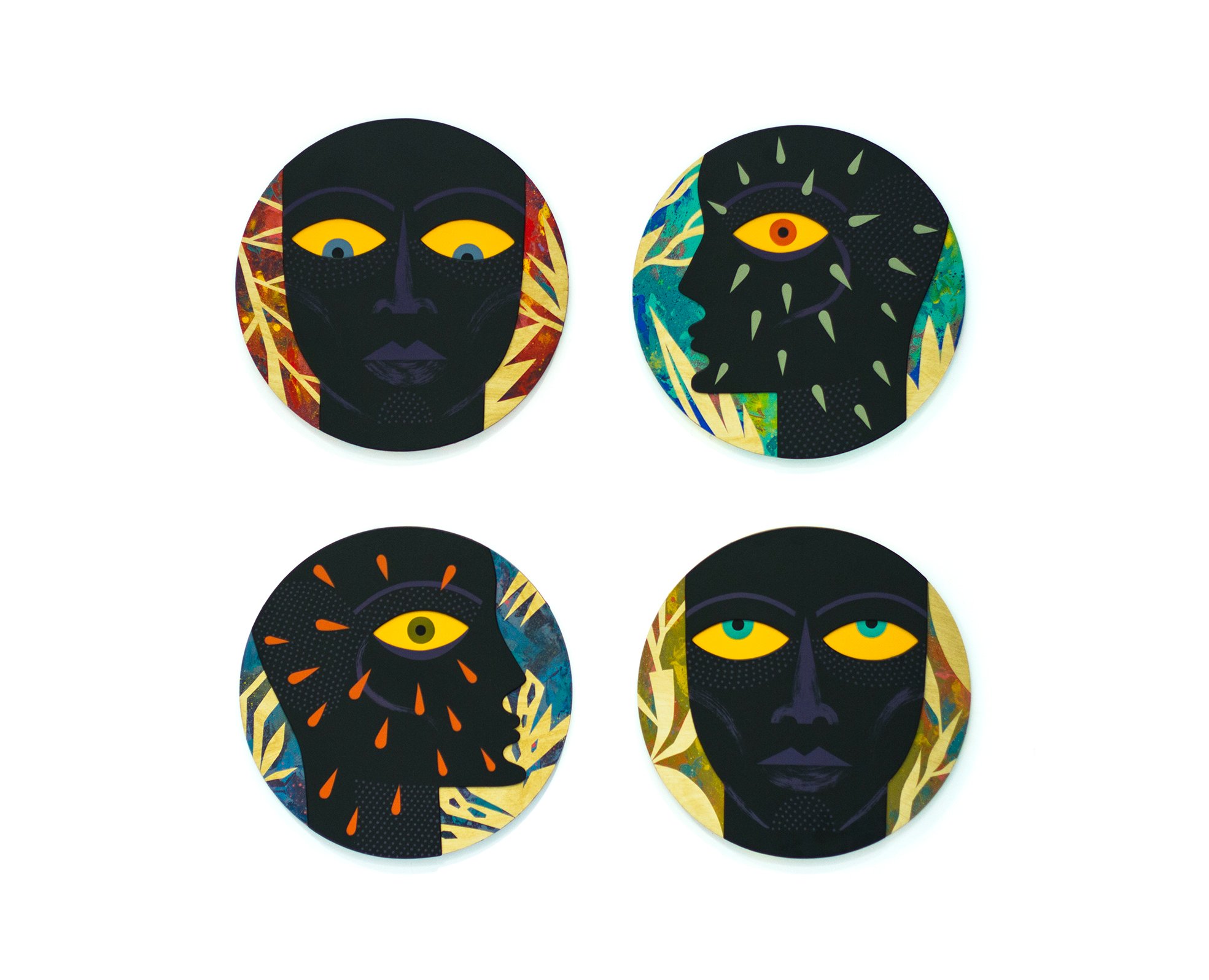 Four presences suspended within a shared field of tension. Here, the gaze does not merely observe, it shapes. Each being exists under the silent judgment of another, in an invisible choreography where identity and perception continuously reshape one another. Each gaze absorbs what it contemplates, as if we were inevitably tinted by the awareness of others.