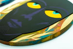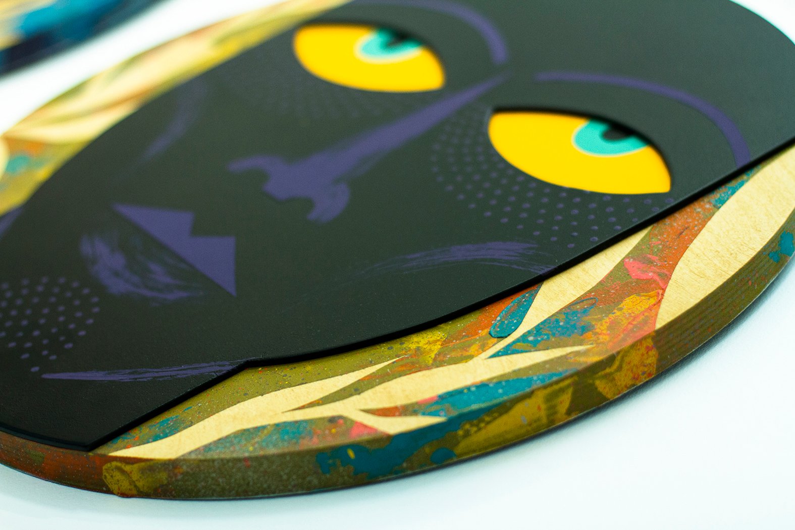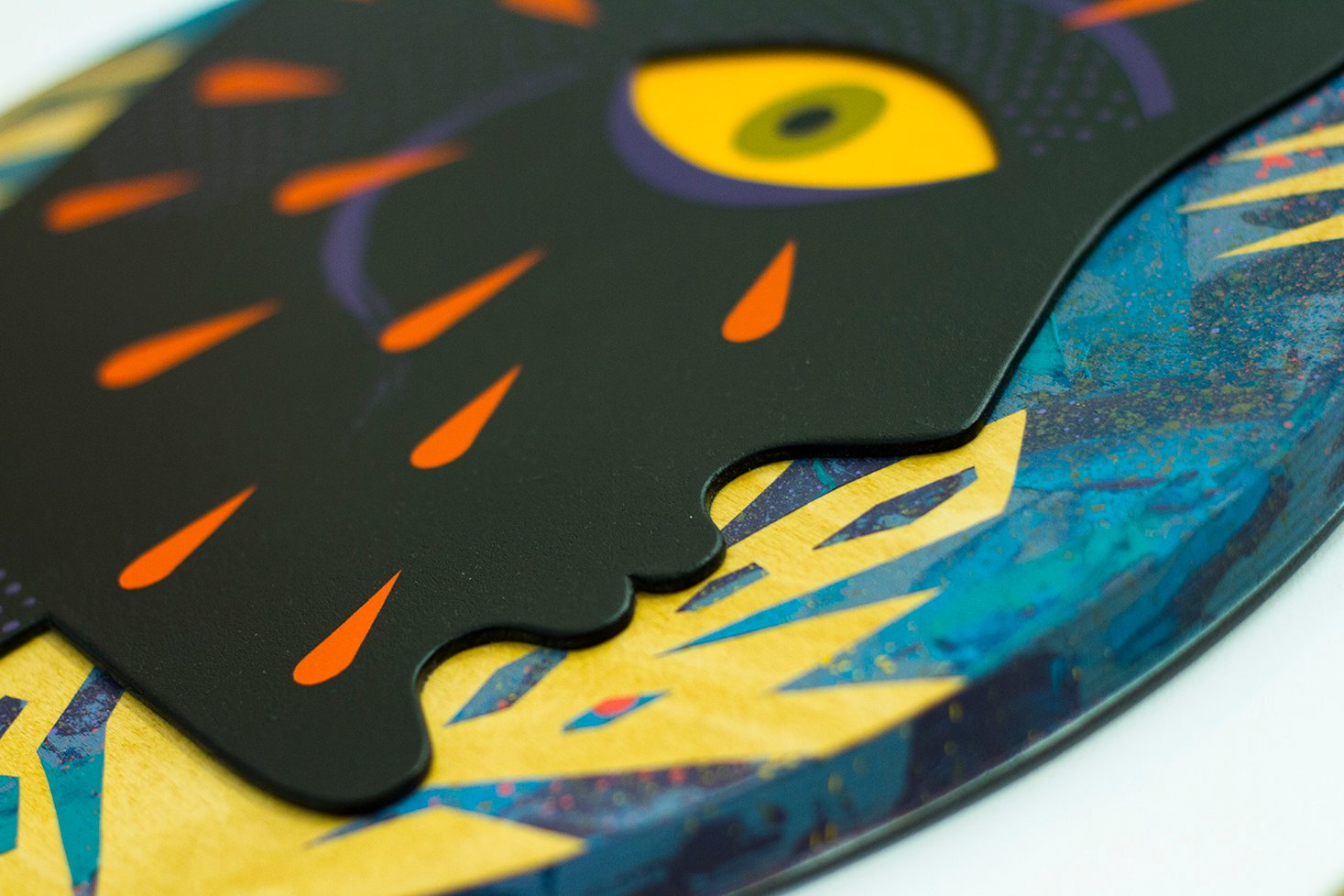 Mixed media on wood with hand crafted wooden relief details. One of a kind piece.